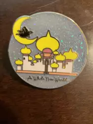 Aladdin and Jasmine - A Whole New World is a pin from the Fantasy Pin Series pin series. It is an Unlicensed (Fantasy) pin, so therefore it is not allowed to be traded in the Disney Parks.