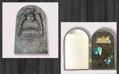 Haunted Mansion Buried Secrets Tombstone 3 Pin Set (full set) is a Limited Edition (LE) 400 pin from the 999 Happy Haunts Ball 2004 pin series. It was originally released on , 2004 and was available from Walt Disney World .