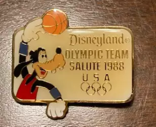 Goofy (Basketball) is an Open Edition pin from the 1988 Summer Olympics pin series. It was originally released on , 1988 and was available from Disneyland Resort .