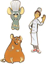 Ratatouille Set is a Limited Edition (LE) 500 pin from the PALM Pixar 3 Piece Disney Pin Sets pin series. It was originally released on , 2022 and was available from an Officially Licensed Disney trading pin vendor (see description for more information).