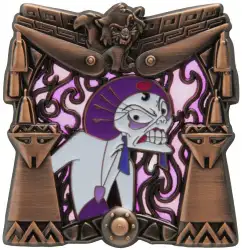 Yzma is a Limited Edition (LE) 400 pin from the Villainous Stained Glass Frames Series pin series. It was originally released on , 2014 and was available from Disney Studio Store Hollywood / Soda Fountain .