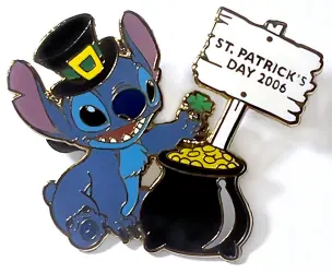 2006 - Stitch is a Limited Edition (LE) 300 pin from the St. Patrick's Day pin series. It was originally released on , 2006 and was available from Disney Studio Store Hollywood / Soda Fountain .