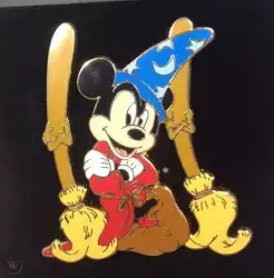 Jumbo Sorcerer Mickey with Brooms is a Limited Edition (LE) 500 pin from the Fantasia pin series. It was available from Disney Store US .