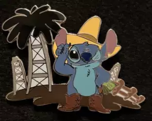 Stitch in Dallas is a Limited Edition (LE) 100 pin from the Stitch in US cities pin series. It was originally released on , 2005 and was available from Disney Auctions .