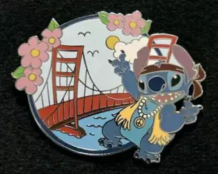 Stitch in San Francisco is a Limited Edition (LE) 100 pin from the Stitch in US cities pin series. It was originally released on , 2005 and was available from Disney Auctions .