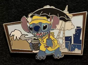 Stitch in Seattle is a Limited Edition (LE) 100 pin from the Stitch in US cities pin series. It was originally released on , 2005 and was available from Disney Auctions .