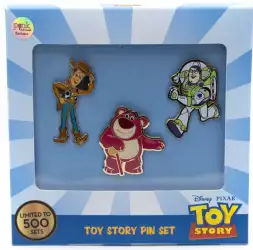 Toy Story LE 500 with Woody Buzz and Lotso is a Limited Edition (LE) 500 pin from the PALM Pixar 3 Piece Disney Pin Sets pin series. It was originally released on , 2022 and was available from an Officially Licensed Disney trading pin vendor (see description for more information).