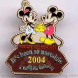 Mickey and Minnie is a Limited Edition (LE) 450 pin from the A Family Pin Gathering 2004 - Thank You pin series. It was originally released on , 2004 and was available from Walt Disney World .