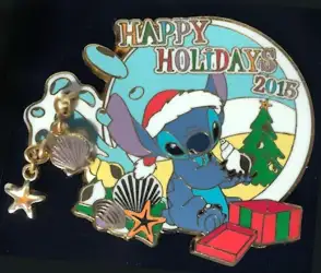 Stitch - Happy Holidays 2015 is a Limited Edition (LE) 1000 pin from the Cast Exclusive pin series. It was originally released on , 2015 and was available from Theme Park Cast Member Exclusive .