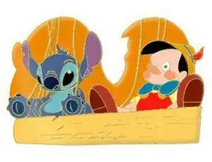 Pin features Stitch and Pinocchio from Lilo and Stitch