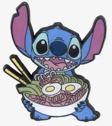Stitch with Ramen is an Open Edition pin from the BoxLunch - Lilo & Stitch pin series. It was originally released on , 2022 and was available from Loungefly .