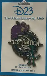 Hercules 15th Anniversary - Pain and Panic is a Limited Edition (LE) 1500 pin from the Destination D: 75 Years of Disney Animated Features pin series. It was originally released on , 2012 and was available from Disney Fan Club .