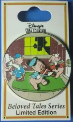 Three Little Pigs is a Limited Edition (LE) 300 pin from the Beloved Tales Series pin series. It was originally released on , 2012 and was available from Disney Studio Store Hollywood / Soda Fountain .
