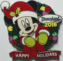 Santa Mickey Mouse Wreath - Cast Exclusive Happy Holidays is a Limited Release pin from the Christmas 2018 pin series. It was originally released on , 2018 and was available from Disneyland Resort .