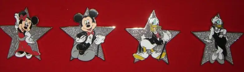 Mickey, Minnie, Donald and Daisy on Stars is a Limited Edition (LE) 1400 4-pin set from the Where Dreams HapPin - Pin Celebration 2007 pin series. It was originally released on , 2007 and was available from Walt Disney World .