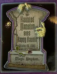 Master Gracey's Tombstone Logo is a Limited Edition (LE) 2000 pin from the 999 Happy Haunts Ball 2003 pin series. It was originally released on , 2003 and was available from Walt Disney World .