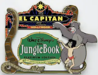 The Jungle Book is a Limited Edition (LE) 300 pin from the El Capitan Marquee Series pin series. It was originally released on , 2007 and was available from Disney Studio Store Hollywood / Soda Fountain .