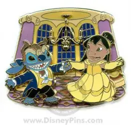 Dream Roles - Lilo and Stitch in Beauty and the Beast is a Limited Edition (LE) 750 pin from the Where Dreams HapPin: Dream Roles Collection pin series. It was originally released on , 2007 and was available from Walt Disney World .