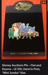 Eeyore Confides in Owl Jumbo is a Limited Edition (LE) 100 pin from the Winnie the Pooh pin series. It was available from Disney Auctions .