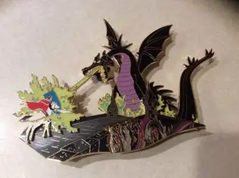 Prince Philip with Maleficent as a Dragon is a Limited Edition (LE) 100 pin from the Sleeping Beauty pin series. It was originally released on , 2006 and was available from Disney Auctions .