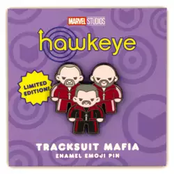 Tracksuit Mafia is a Limited Edition (LE) pin from the Marvel Studios x 100% Soft pin series. It was originally released on , 2022 and was available from an Officially Licensed Disney trading pin vendor (see description for more information).