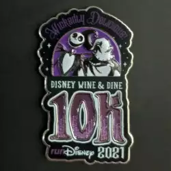 2021 Disney Wine & Dine 10k - Jack Skellington & Oogie Boogie is a Limited Release pin from the runDisney: Wine & Dine Half Marathon Weekend pin series. It was originally released on , 2021 and was available from Walt Disney World .
