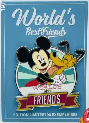 Mickey and Pluto is a Limited Edition (LE) 700 pin from the World's Best Friends pin series. It was originally released on , 2021 and was available from Disneyland Resort Paris .