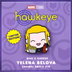 Mac & Cheese Yelena Belova (SDCC Exclusive) is a Limited Edition (LE) pin from the Marvel Studios x 100% Soft pin series. It was originally released on , 2022 and was available from an Officially Licensed Disney trading pin vendor (see description for more information).