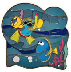 Stitch with Dory is a Limited Edition (LE) 250 pin from the Disney Auctions (P.I.N.S.) pin series. It was originally released on , 2005 and was available from Disney Auctions .