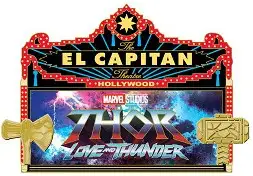 Thor: Love and Thunder is a Limited Edition (LE) 400 pin from the El Capitan Marquee Series pin series. It was originally released in July, 2022 and was available from Disney Studio Store Hollywood / Soda Fountain .