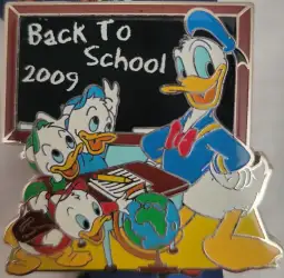 Donald Back to School 2009 is a Limited Edition (LE) 1500 pin from the Back to School pin series. It was originally released in August, 2009 and was available from Disneyland Resort .