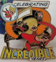 Celebrating 5 Incredible Years is a Limited Edition (LE) 1500 pin from the The Incredibles pin series. It was originally released on , 2009 and was available from Disneyland Resort .