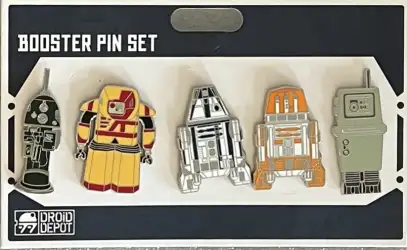 Star Wars Droid Depot Booster Set is an Open Edition pin from the Star Wars Galaxy's Edge - Star Wars Droid Depot Booster Set pin series. It was originally released on , 2022 and was available from Multiple Sources (WDW, DLR, etc.).