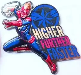 Higher Further Faster is an Open Edition pin from the Captain Marvel pin series. It was originally released on , 2022 and was available from Multiple Sources (WDW, DLR, etc.).