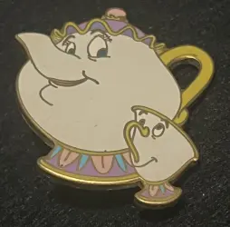 Pin features Mrs. Potts and Chip from Beauty and the Beast
