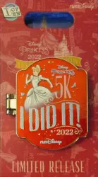 5K I Did It Cinderella is a Limited Release pin from the runDisney: Princess Half-Marathon Weekend 2022 pin series. It was originally released on , 2022 and was available from Walt Disney World .