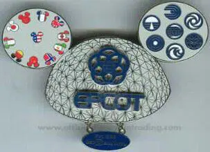 Ears To Epcot ® is a Limited Edition (LE) 750 pin from the Celebrating Fifty Years Ear Hat Series pin series. It was originally released on , 2005 and was available from Walt Disney World .