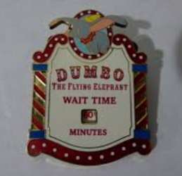 Dumbo: The Flying Elephant is a Limited Release pin from the HKDL Wait Time Signs pin series. It was originally released on , 2009 and was available from Walt Disney Imagineering .
