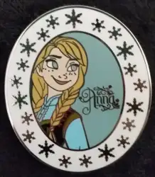 Anna is an Open Edition pin from the Frozen Oval Frames Booster Set pin series. It was originally released on , 2013 and was available from Multiple Sources (WDW, DLR, etc.).