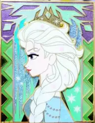 Elsa is a Limited Edition (LE) 75 pin from the DBG Fantasy Pin Series: Disney Profile pin series. It is an Unlicensed (Fantasy) pin, so therefore it is not allowed to be traded in the Disney Parks.