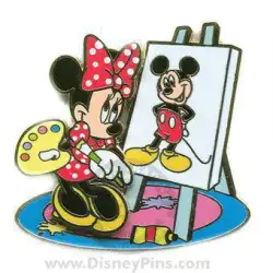 Minnie Painting Mickey is an Open Edition pin from the Painter Series pin series. It was originally released on , 2007 and was available from Multiple Sources (WDW, DLR, etc.).