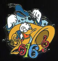 Donald with Tuba is an Open Edition pin from the 2016 Music, Magic, Memories Mystery Collection pin series. It was originally released in January, 2016 and was available from Multiple Sources (WDW, DLR, etc.).