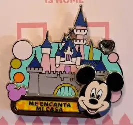 Me Encanta Mi Casa (Mickey Mouse and Sleeping Beauty Castle) is a Limited Edition (LE) 1500 pin from the Disneyland is Home Collection pin series. It was originally released on , 2022 and was available from Disneyland Resort .