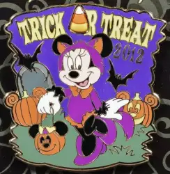 Minnie is a Limited Edition (LE) 2000 pin from the Trick or Treat Halloween 2012 pin series. It was originally released on , 2012 and was available from Multiple Sources (WDW, DLR, etc.).