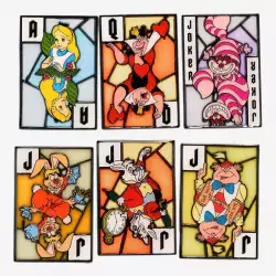 Alice In Wonderland Cards Collection is an Open Edition pin from the Hot Topic - Alice In Wonderland Stained Glass Cards Blind Box pin series. It was originally released in August, 2022 and was available from Loungefly .