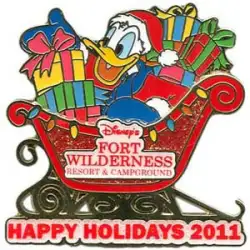 Donald Duck at Disney's Fort Wilderness Resort & Campground is a Limited Edition (LE) 1000 pin from the Resort Holiday Collection 2011: Sleighs pin series. It was originally released on , 2011 and was available from Walt Disney World .