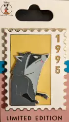 Meeko is a Limited Edition (LE) 250 pin from the Commemorative Animal Stamps Series 4 pin series. It was originally released on , 2022 and was available from Disney Employee Center .