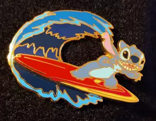 Stitch Surfing is an Open Edition pin from the Lilo & Stitch pin series. It was available from Multiple Sources (WDW, DLR, etc.).
