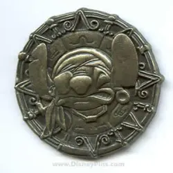Stitch Medallion is an Open Edition pin from the Pirates of the Caribbean pin series. It was originally released 2006 and was available from Multiple Sources (WDW, DLR, etc.).