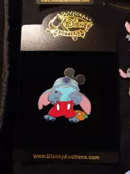 Stitch Pulling on Mickey's Shorts is a Limited Edition (LE) 1000 pin from the Disney Auctions (P.I.N.S.) pin series. It was originally released on , 2004 and was available from Disney Auctions .